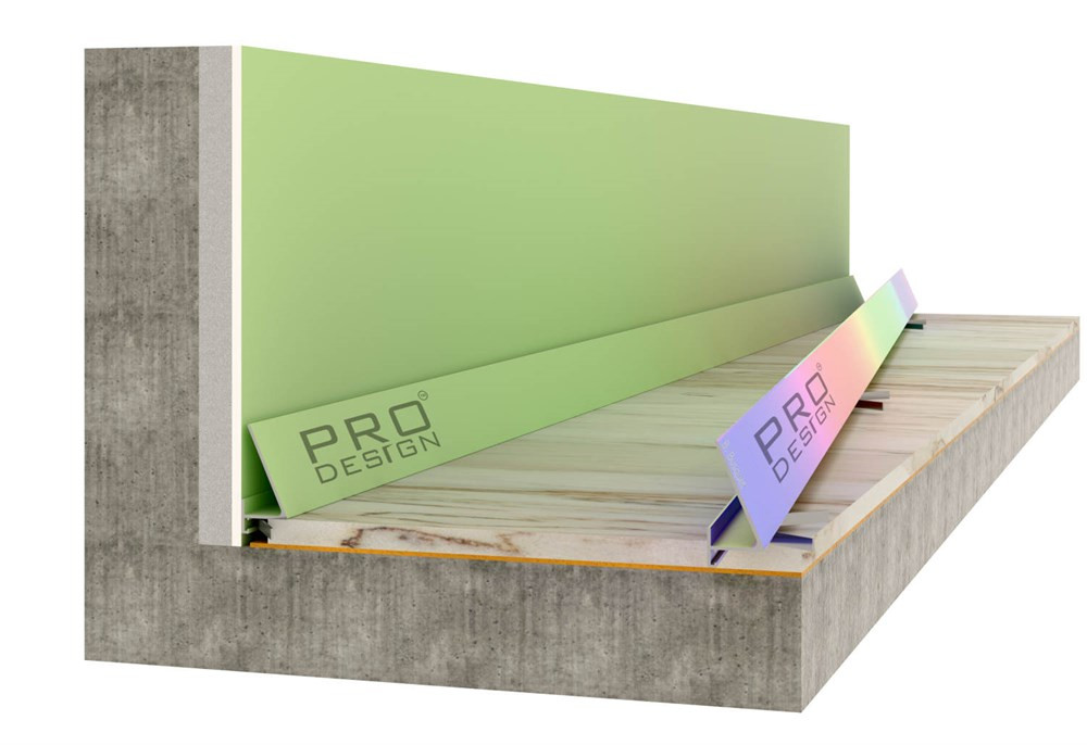 Российский бренд Pro Design выпускает плинтус скрытого монтажа который монтируется в стену. Плинтус может быть как обработанный (анодированный), так и без обработки. Компания также выпускает МДФ вставки, которые прогрунтованы и полностью готовы к покраске в любой цвет. МДФ вставки могут быть высотой как 80 мм и 70 мм. Именно вставки 70 мм используется как скрытый плинтус с подсветкой.