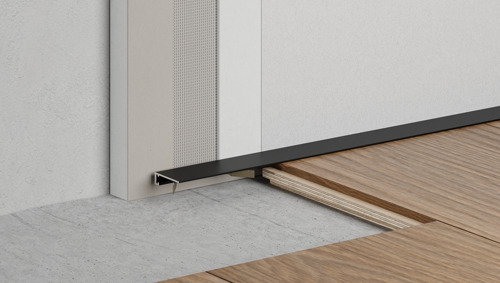 Среди преимуществ данной модели стоит отметить её универсальность: скрытый плинтус подходит как для классических, так и для современных интерьеров. Чёрный цвет придает помещению изысканность и строгость, а также облегчает комбинирование с другими элементами декора.