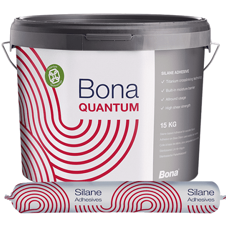 Основание должно быть ровным, чистым, постоянно сухим, устойчивым и не иметь физических повреждений, трещин, загрязнений и веществ, препятствующих приклеиванию. А также оно должно соответствовать требованиям действующих стандартов. При необходимости основание должно быть профессионально подготовлено. Для непосредственного приклеивания деревянного пола к чистому основанию с клеем Bona Quantum и Bona Quantun T, грунтовка обычно не требуется. Если всё-таки основание проблематичное, то его можно улучшить с помощью таких грунтовок как, D501, R410, R540 или R590. Неровное основание рекомендуется выравнивать с помощью выравнивающих смесей Bona H600, H610 или H660.