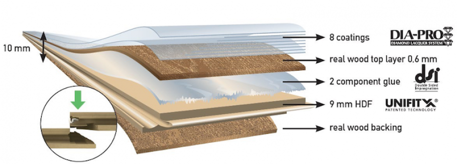 Бельгийская паркетная доска Par-ky экологически чистая за счет покрытия вернего слоя шпоном натуральной древесины. Фаски доски пропитаны специальным составом Ultafresh, которое позволяет не скапливаться бактериям в местах соединения. Доска на HDF плите ультрапрочная, за счет повышенной плотности, которая достигается путем прессования с технологией DSI.