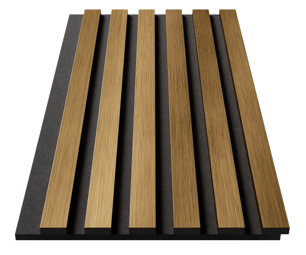 Акустическая панель Cosca Decor Эмираты черный войлок 600х300х19мм рейки экополимер золото матовое (2 шт.)