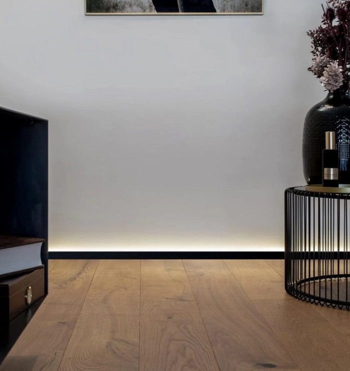 Преимущества данной модели включают в себя встроенную LED-подсветку, которая создаёт дополнительную световую атмосферу и подчёркивает уникальность интерьера. Щелевой дизайн не только улучшает вентиляцию, но и является декоративным элементом. Помимо этого, микроплинтус Altai легко монтируется и обслуживается, что гарантирует удобство в использовании.