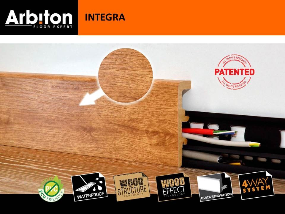 Польский производитель плинтуса Arbiton успешно вошел на российский рынок и на сегодняшний день является хорошей альтернативой среди многих производителей плинтуса из экополимера. Богатая палитра оттенков плинтуса позволит подобрать его к различному напольному покрытию и дверям, сделать Ваш интерьер более привлекательным и дополненным совершенства. Усиленный жесткий край и специальный состав пластика будет дополнительным основанием для надежной фиксации его в любом месте.