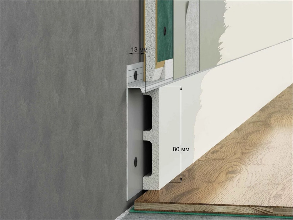 Отделка интерьера требует внимания к деталям, и плинтус Laconistiq Regular станет идеальным выбором для создания безупречного дизайна вашего пространства. Этот скрытый плинтус выполнен из прочных материалов и обладает анодированным черным покрытием, что обеспечивает долговечность и стойкость к истиранию. Размеры плинтуса 13х80х3000 мм позволяют с легкостью установить его в помещениях различной площади, обеспечивая аккуратное соединение стен и пола.