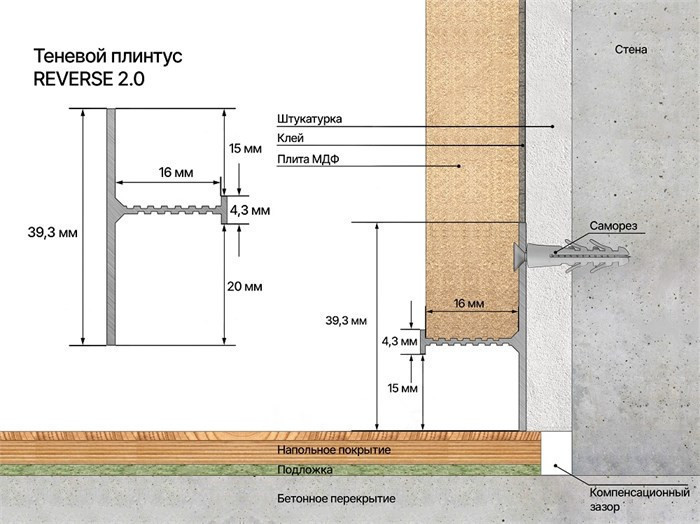 • Тип плинтуса: прямой, узкий, скрытого монтажа
