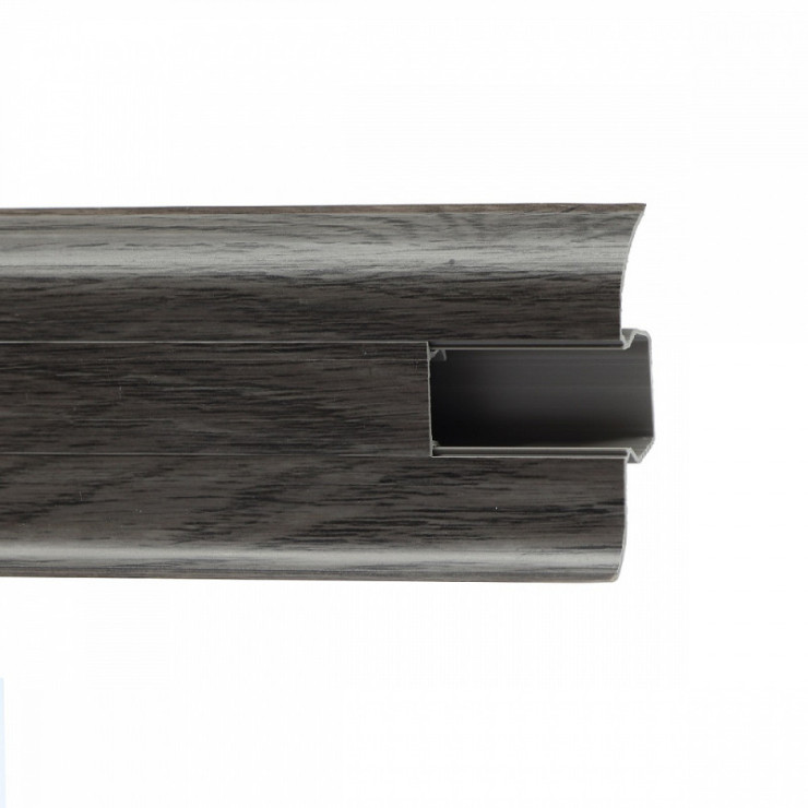 Напольный плинтус Royce новника 2021 года. Данный плинтус имеет два типа размера и профиля, высота может быть 58 мм и 80 мм. Плинтус обладает кабель каналом и комплектуется фурнитурой (соединители, торцевые окончания и углы внутренний и наружный). Плинтус богат цветовыми декорами, что позволяет его подобрать как под любое напольное покрытие, так и под межкомнатные двери.