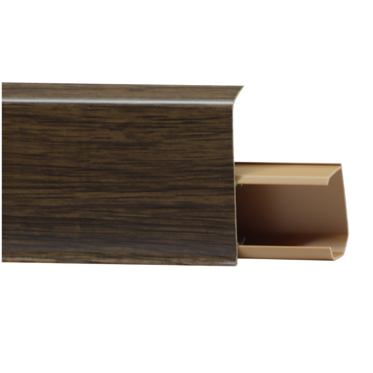 Напольный плинтус Winart новника в строительном сегменте. Данный плинтус имеет три типа размера и профиля, высота может быть 58 мм, 72 мм и 80 мм. Плинтус обладает кабель каналом и комплектуется фурнитурой (соединители, торцевые окончания и углы внутренний и наружный). Плинтус богат цветовыми декорами, что позволяет его подобрать как под любое напольное покрытие, так и под двери.